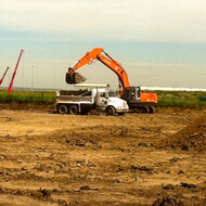 Weinrich Contracting Ltd., was tendered to excavate the north - east vacant land on Peter Kiewit's property in north east Edmonton. The project involves stripping of the entire site, removal of approximately 62,000m3 of topsoil from a large pile, importing of clay, placing geotextile, and finally importing gravel.
